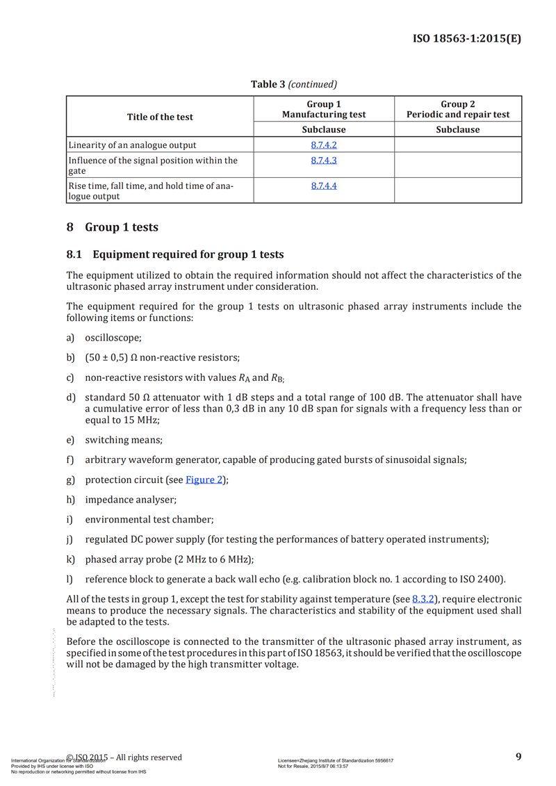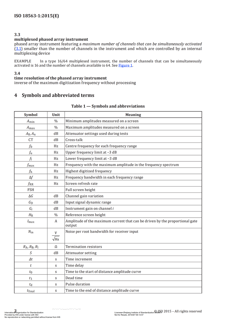 ISO 18563-12015 Non-destructive testing —— Characterization and verification of ultrasonic phased array equipment —— Part 1 Instruments