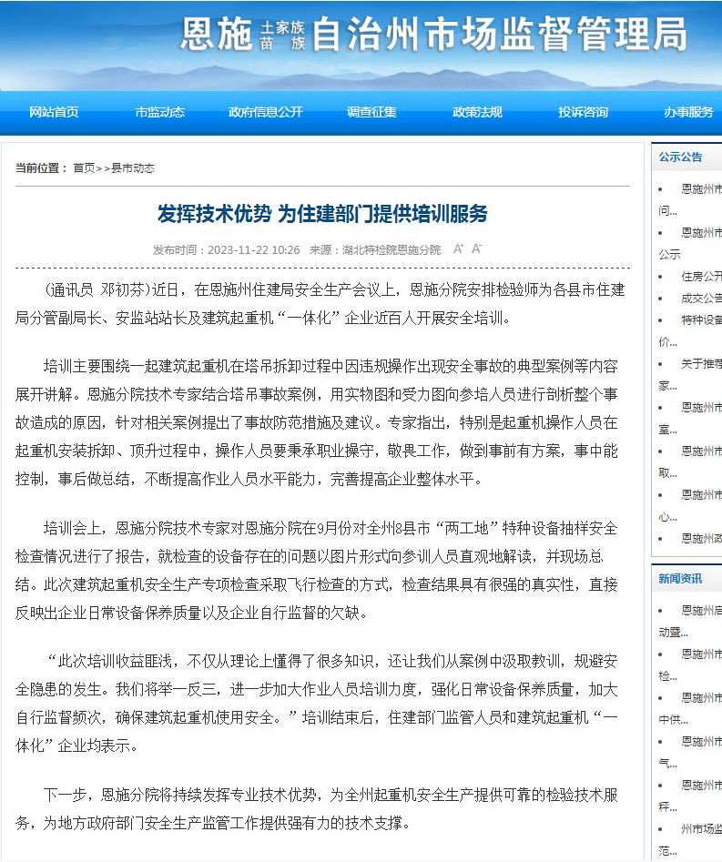 恩(en)施州市場監(jiān)管局(2025.12.03)發揮技(jì)術優勢 為住(zhù)建部門提供(gong)培訓服務