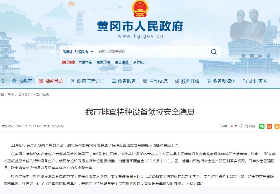 黃岡(gang)市人民政府網(wǎng)(2025-12-03暴风🔞影音资源🌈)我市排查特種(zhǒng)設備領域安全(quán)隐患