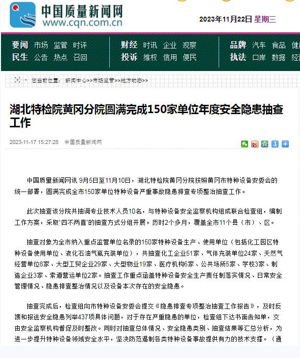 中國(guo)質量新聞網(2025-12-03){q洛城机🔞密下载㊙️iyeming}黃(huáng)岡分院圓滿完(wán)成150家單位年度(du)安全隐患抽查(chá)工作