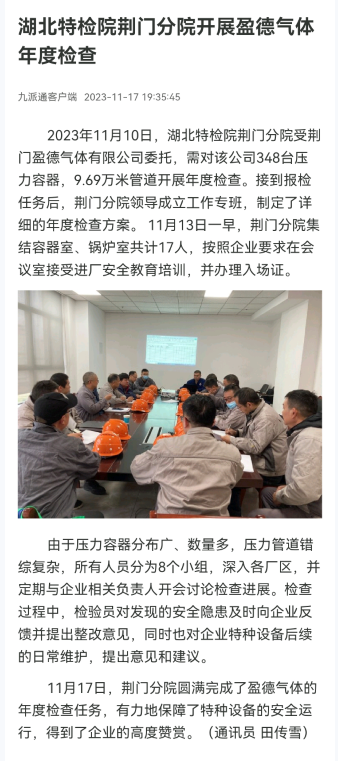 九派(pai)通(2025年12月3日){qiyemin陌陌艺校小❌琴叫声过大㊙️g}荊門(mén)分院開展盈德(de)氣體年度檢查(chá)