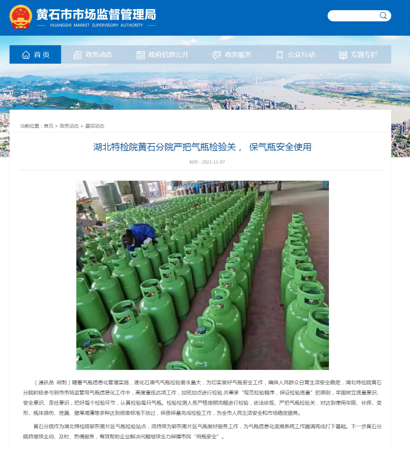 黃石市市(shì)場監督管(guǎn)理局(2025.12.春暖花开吧🔞有你cc㊙️07)厦门成同机电制造有限公司(H5网站)黃石(shí)分院嚴把(ba)氣瓶檢驗(yan)關,保氣瓶(ping)🐇安全使用(yòng)