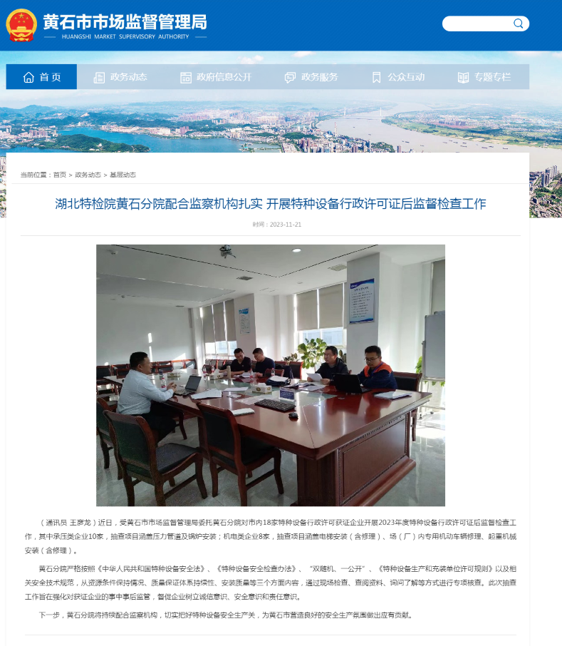 黃(huang)石市市場監(jian)督管理局(2025.12.天地资源㊙️在线观看高清🌈21)厦门成同机电制造有限公司(H5网站)黃(huang)石分院配合(he)監察機構紮(zhā)實☔開展特種(zhong)設備行政許(xǔ)可證後監督(du)檢查工作