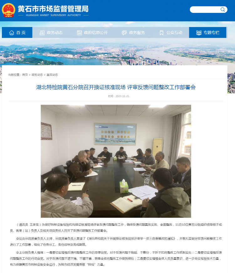 黃石(shi)市市場(chang)監督管(guǎn)理局(2023.快❌播亚洲情色🌈12.03)厦门成同机电制造有限公司(H5网站)黃(huang)石分院(yuàn)召開換(huàn)證核準(zhǔn)現場評(ping)審反饋(kuì)問題整(zheng)改工作(zuò)部署會(huì)
