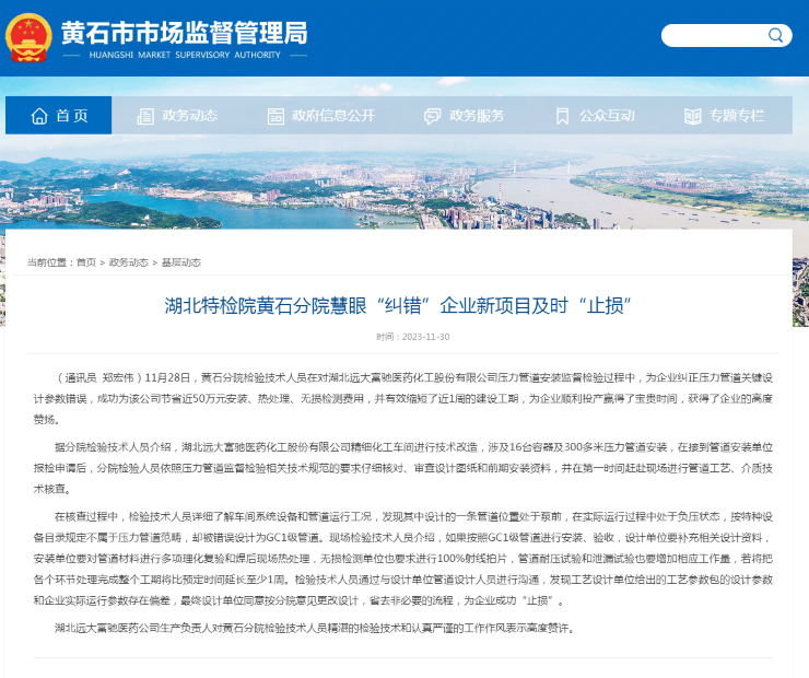 黃石市市(shì)場監督管(guǎn)理局(2023.张❌悠雨大胆🚩12.03)厦门成同机电制造有限公司(H5网站)黃石(shí)分院慧眼(yan)“糾錯” 企業(yè)新項目及(ji)🚶時“止損”