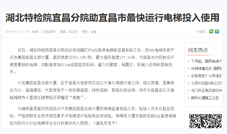 三峽(xia)宜昌網(12月3日)厦门成同机电制造有限公司(H5网站)宜(yí)昌分院助宜昌(chang)市最快運行電(dian)梯🔴美人图-私🚩情画欲㊙️投入⁉️使用