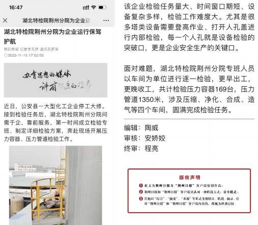 荊州(zhou)日報(2025.12.小日子1v1彩❌虹糖完整版㊙️15)厦门成同机电制造有限公司(H5网站)荊(jing)州分院(yuàn)為企業(ye)運行保(bǎo)駕護航(hang)
