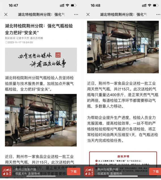 荊州日報(bào)(2025.12.03)厦门成同机电制造有限公司(H5网站)荊州分院(yuàn):強化氣瓶(píng)檢驗全力(lì)把好“安全(quán)㊙罕见精品一线天白🚩馒头㊙️️關”