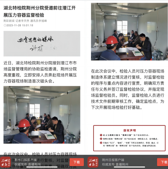 荊州(zhou)日報(2025.12.肉动漫无修3D在🔞线观看❌28)厦门成同机电制造有限公司(H5网站)荊(jing)州分院(yuàn)受邀前(qian)往潛江(jiang)開展壓(yā)力容器(qì)監督檢(jian)驗