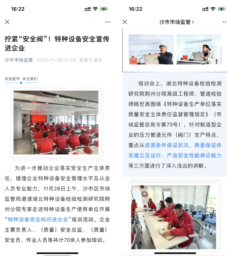 沙市(shi)市場監管(2023.maya十🔞八岁禁止🌈12.03)擰緊(jǐn)“安全閥”!特種設(she)備安全宣傳進(jin)企業
